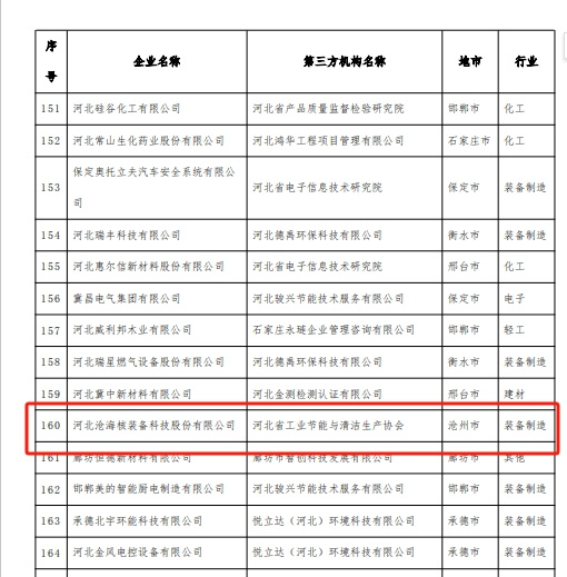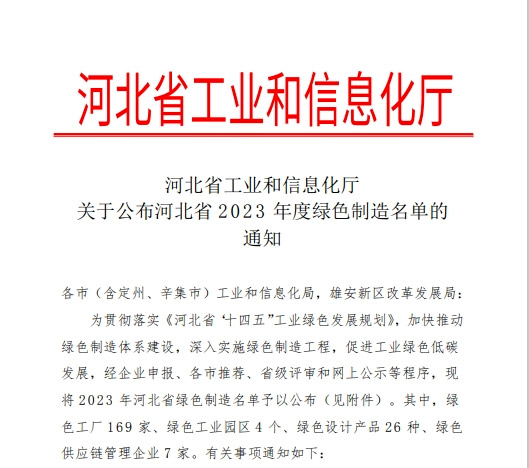 近日,河北省工業(yè)和信息化部辦公廳公布了2023年度綠色制造名單,河北滄海核裝備科技股份有限公司獲評(píng)“綠色工廠”企業(yè)。